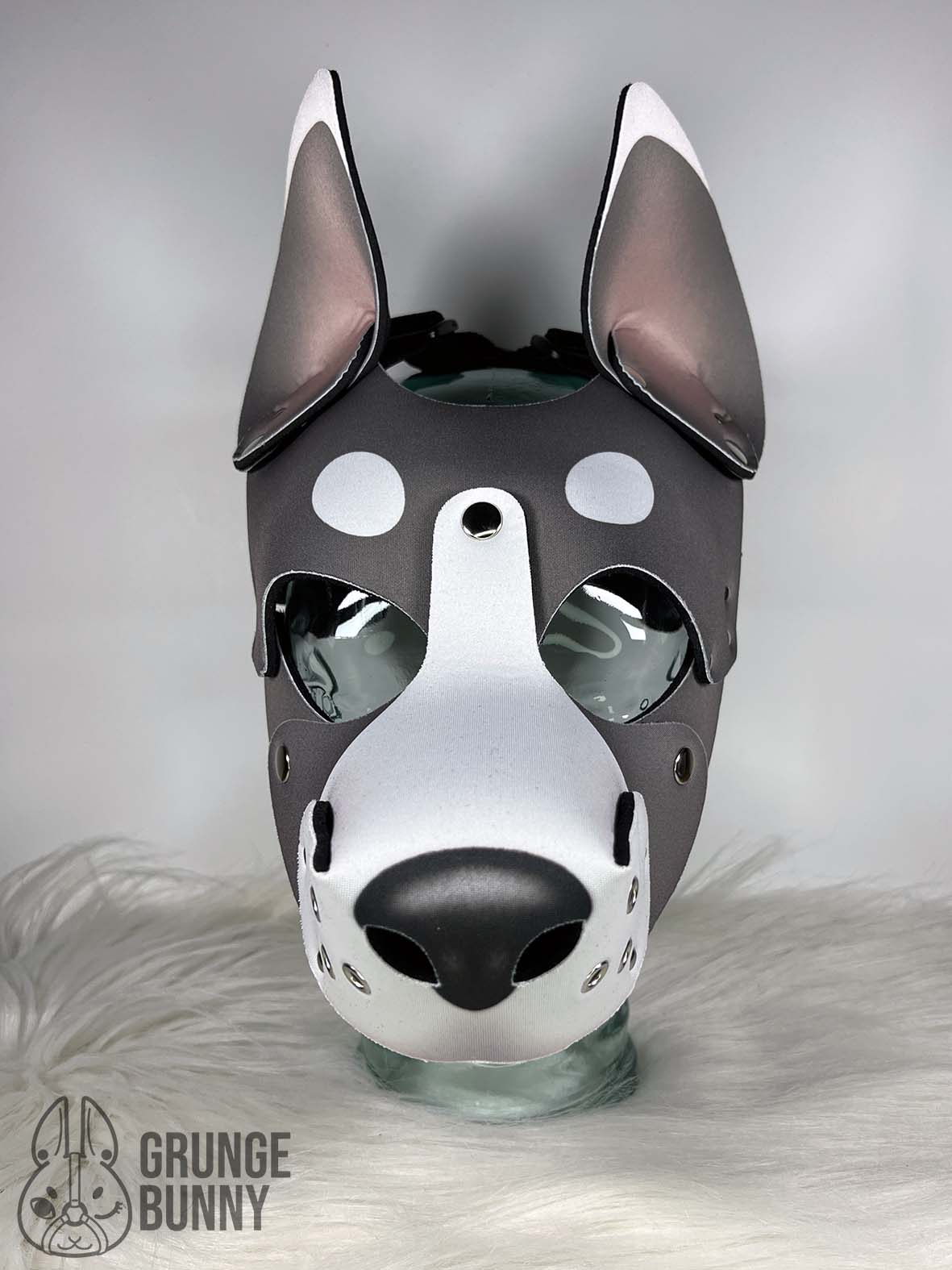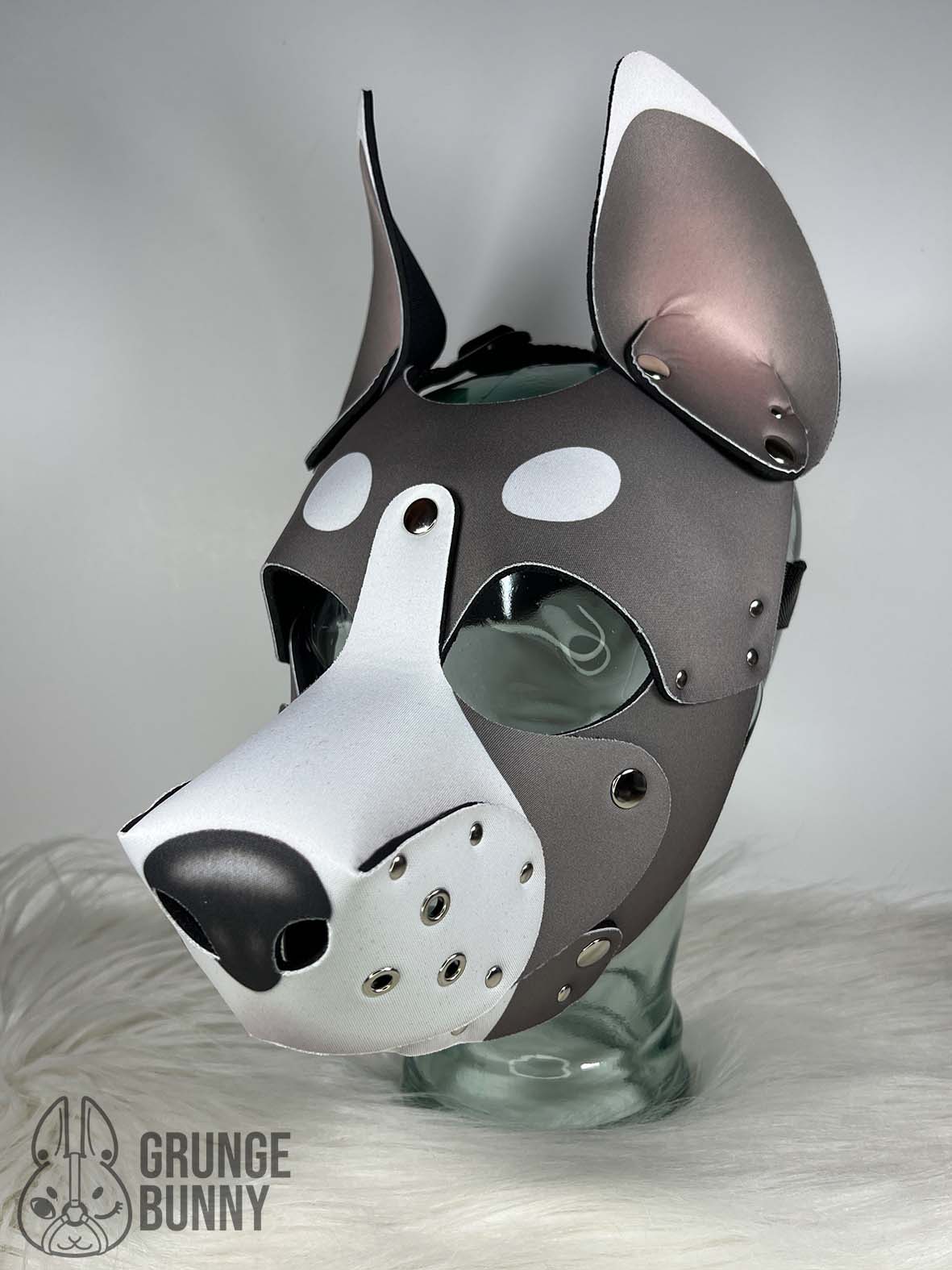 Grey & White Collie - Large, Silver Hardware, Pointed Ears