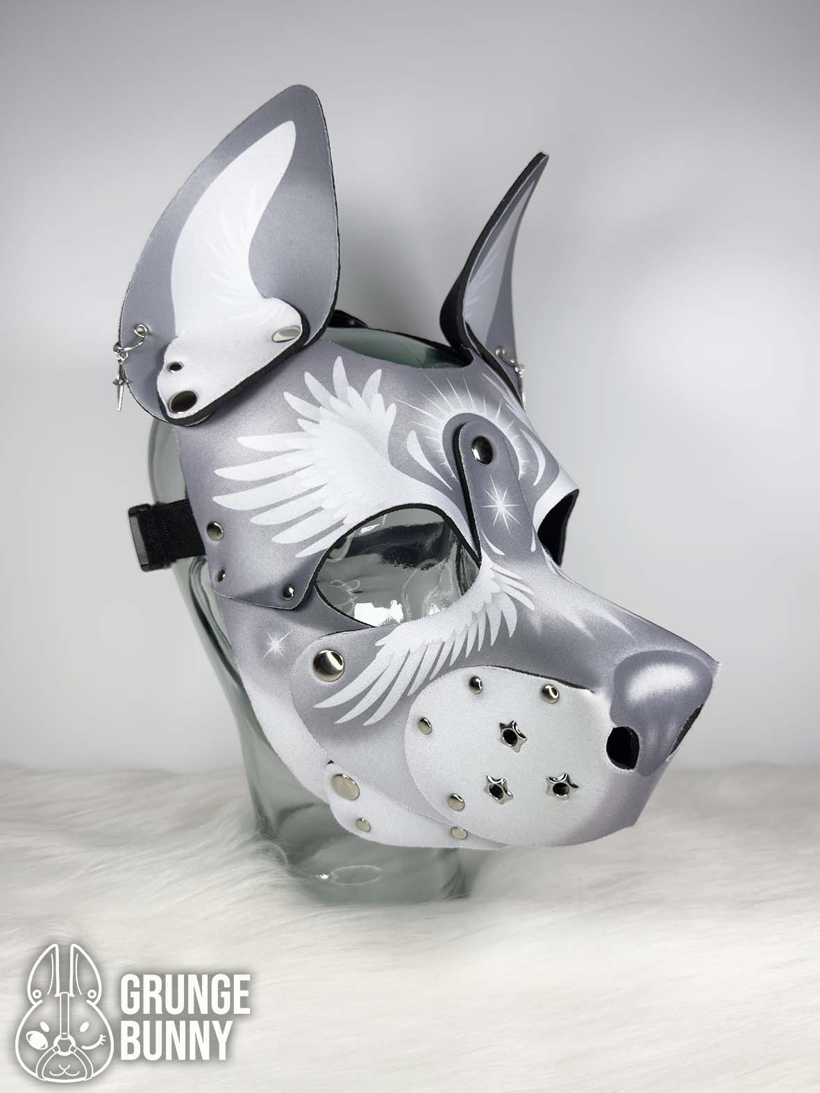 Black & White Husky - Medium, Black & Silver Hardware, Pointed Ears