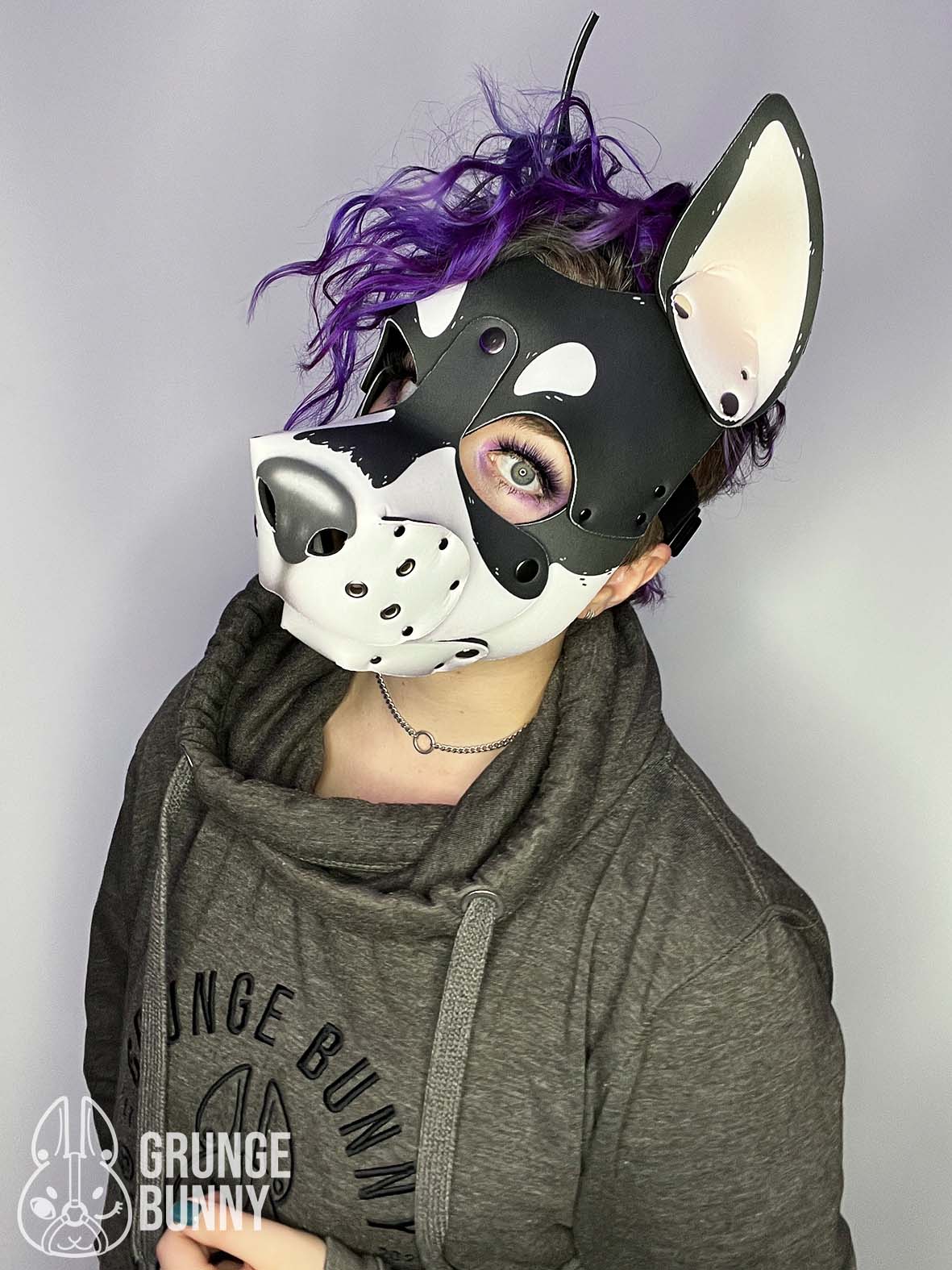Black & White Husky - Large, Black & Silver Hardware, Pointed Ears
